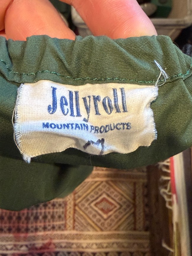 That’s exactly what we have here: a pair of mitten shells, almost certainly from the early-to-mid 1970s, bearing the label of Jellyroll Mountain Products. No city. No website, obviously. No entry in any catalog archive, gear forum, or collector database we’ve been able to find. Just a name, stitched into a piece of outdoor history, attached to mittens that have outlasted any public record of the company that made them.