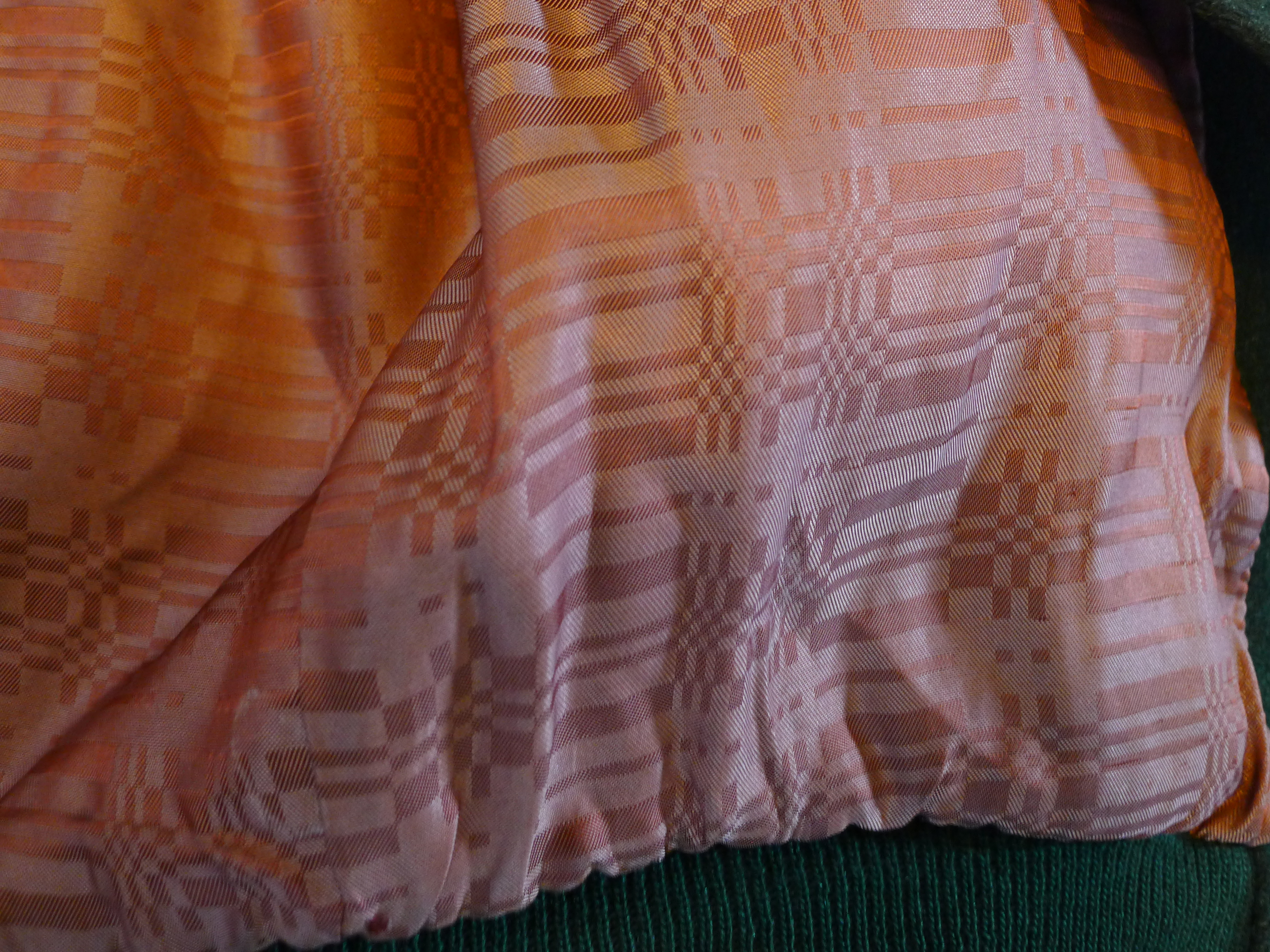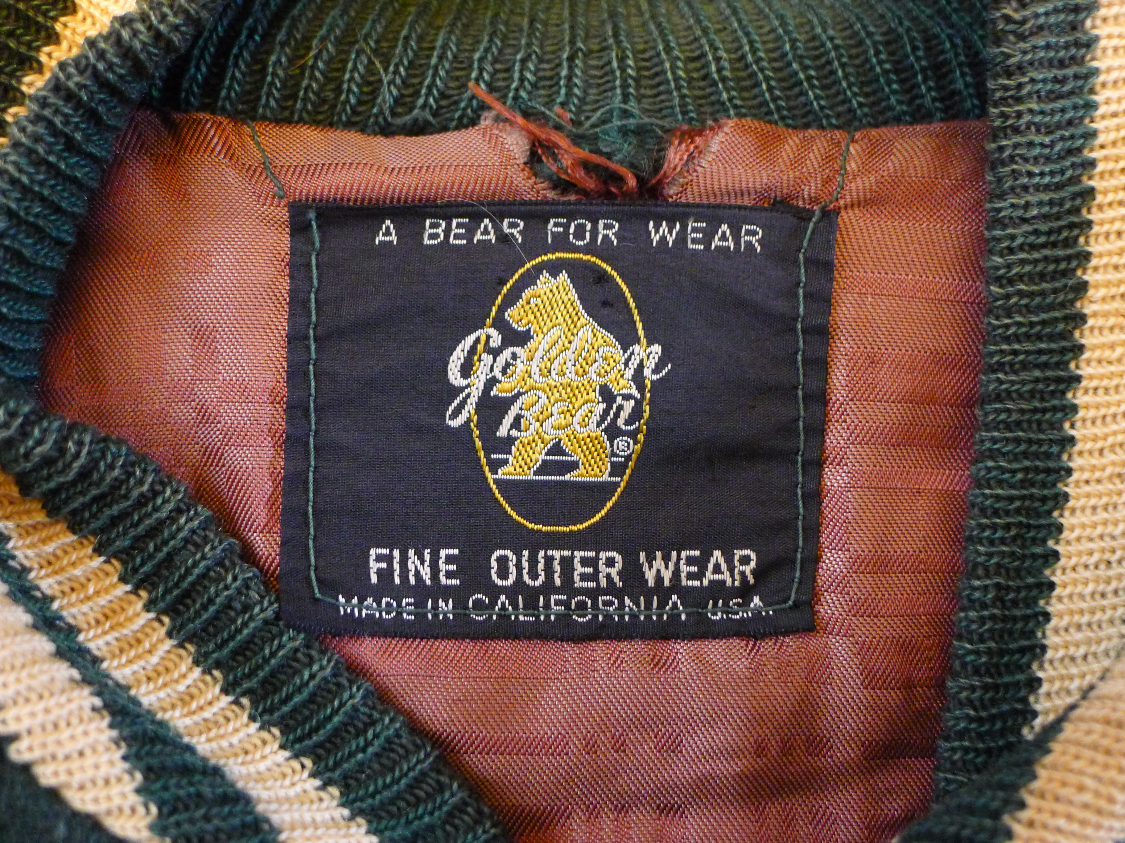 Vintage Sport Chief gaberdine jacket by Chief Apparel of NY. Gabardine, an early water and wind repellant fabric gets it’s qualities from the manner in which it is woven. It remained a popular option until the development of more sophisticated weatherproof materials made of nylon. This jacket features Leather shoulders, pocket accents and button covers. Front closure is attained by a Conmar locking zipper. The liner features the MG automobile company logo. Not sure if this was a promotional piece, or the Chief Apparel designers were just fans.