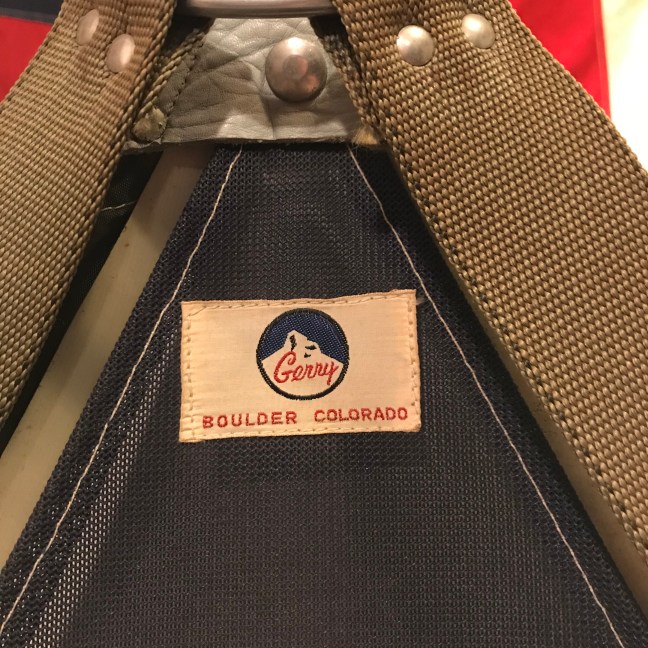 This is an early Gerry rucksack. As I’ve probably mentioned in other posts, the earliest outdoor gear was simply repurposed military surplus and this bag shares many characteristics. Beyond the olive drab nylon the bag resembles very much a European military pack. Specifically one from a company called Bergans of Norway , which was made of more traditional materials, canvas and leather.