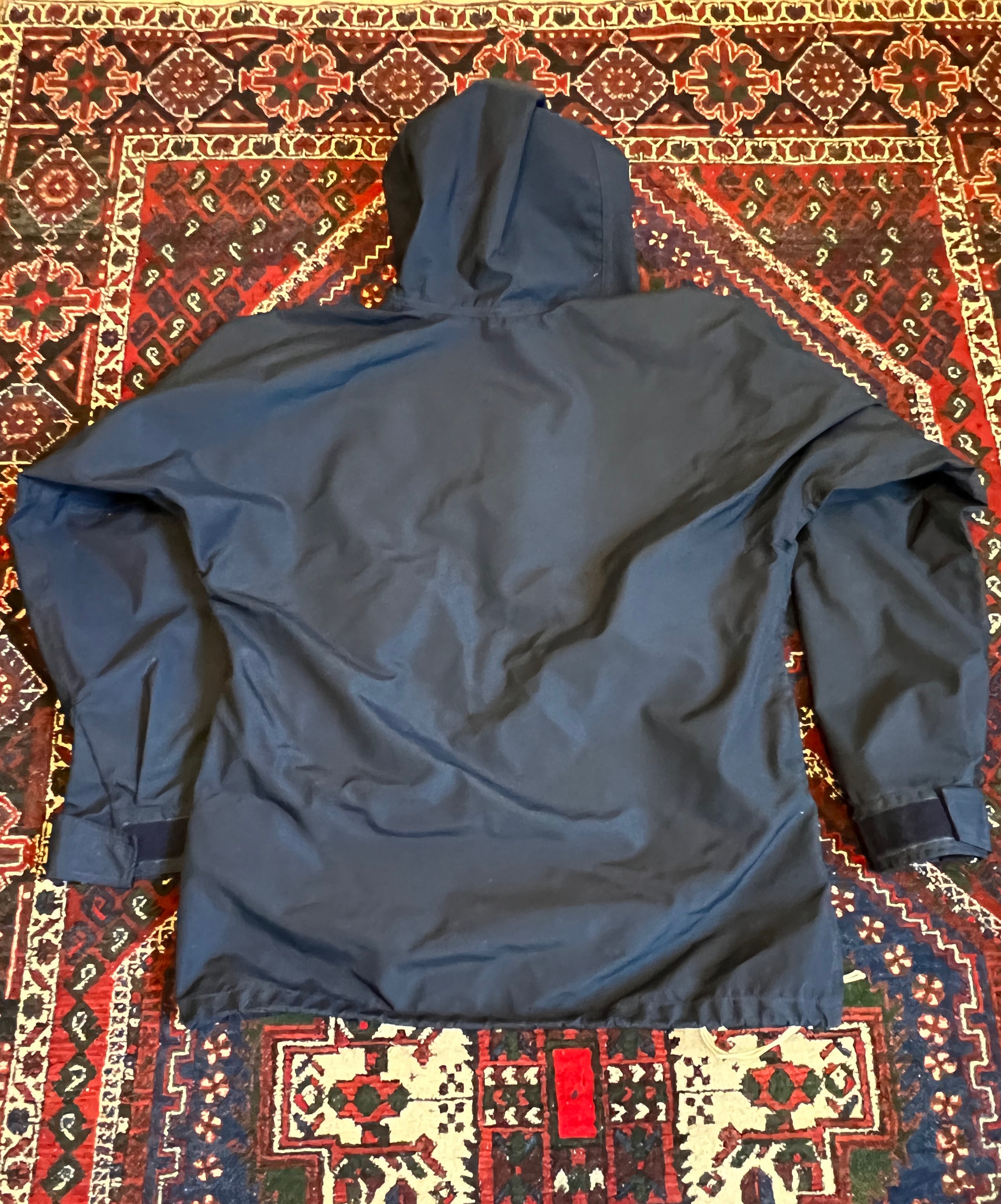 An age of innovation is evident in this beautifully functional anorak parka. First let’s talk about the fabric choice. While Gore-Tex had been around for over a decade by 1980, commercial use didn’t really begin until 1976. So at the time of this parkas’ manufacture, the breathable, waterproof fabric was still new to consumers and just beginning to overtake old standards like rip-stop nylon, 60/40 and other poly cotton blends as go-to shell materials. The early version of Gore-Tex used here is much thicker than what we know today, and actually has a weight closer to 60/40. The white label found in the hood, an early commercial example (earlier versions were white on black), has what I believe to be a month and year of manufacture on the back side. I have never fully authenticated this theory, but after years of looking at these labels and comparing to catalogs and other resources, it seems to line up. The markings seen on this label are IV/82, or April, 1982. The practice of this dating on the backside of labels also appears to continue in the early black version of the Gore-Tex Label.
