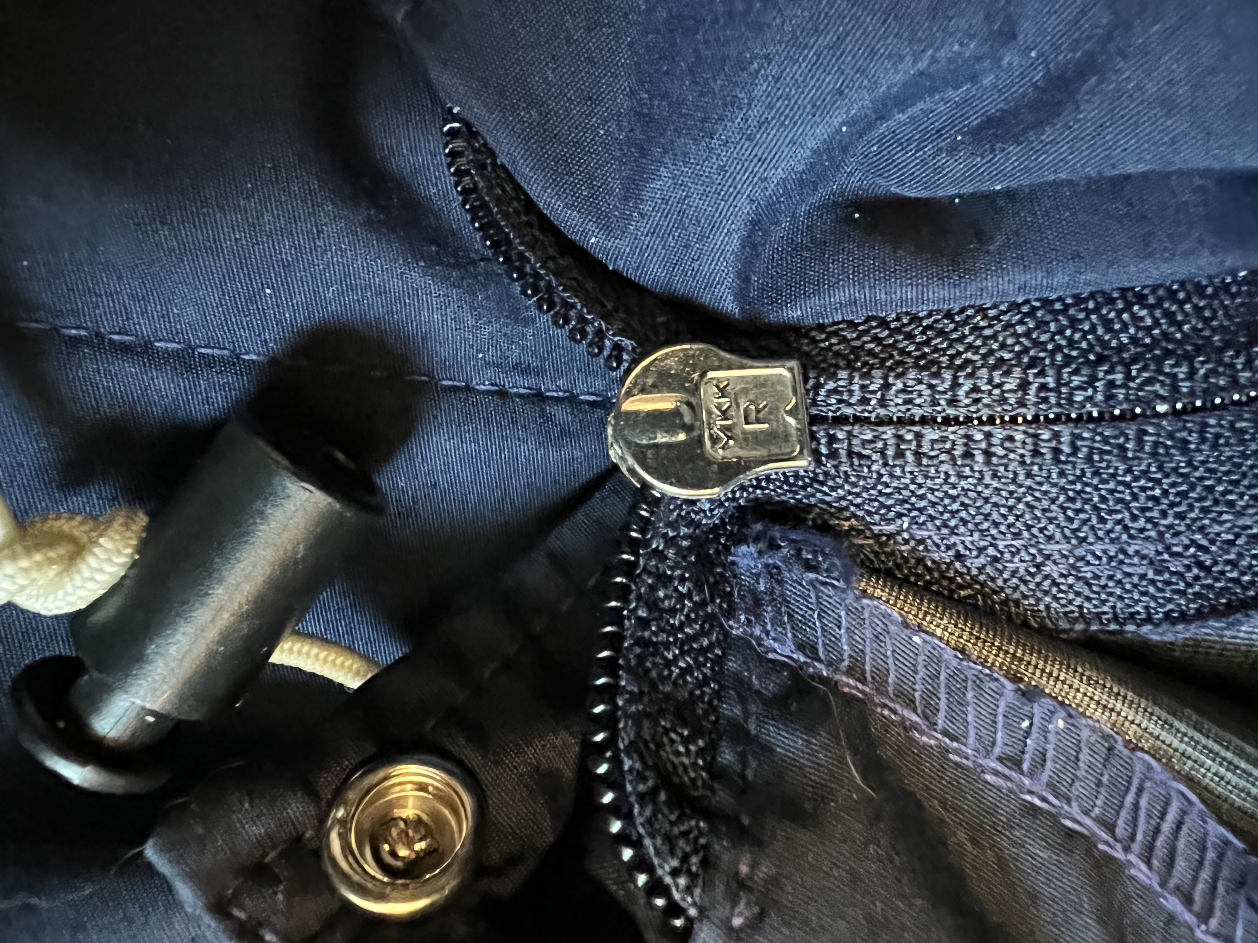 The closures on this parka get an upgrade in the form of the custom TNF zipper pulls. While The North Face embossed snaps had been around for probably a decade at this point, the proprietary zipper pulls are a new add. If we look at the back of the zipper head, we can see that the zipper is Manufactured by YKK. My guess is that custom zipper pulls offered YKK a great way to expand their business, attract customers and gain the dominance over the industry they have today. Prior to this time, there seemed to be a handful of zipper makers used in outdoor gear such as Talon and Coats and Clark or C&C. I am a little surprised the Fastex cord locks at the hood and waist drawstring are not The North Face labeled, but those were not too far off from this time period.