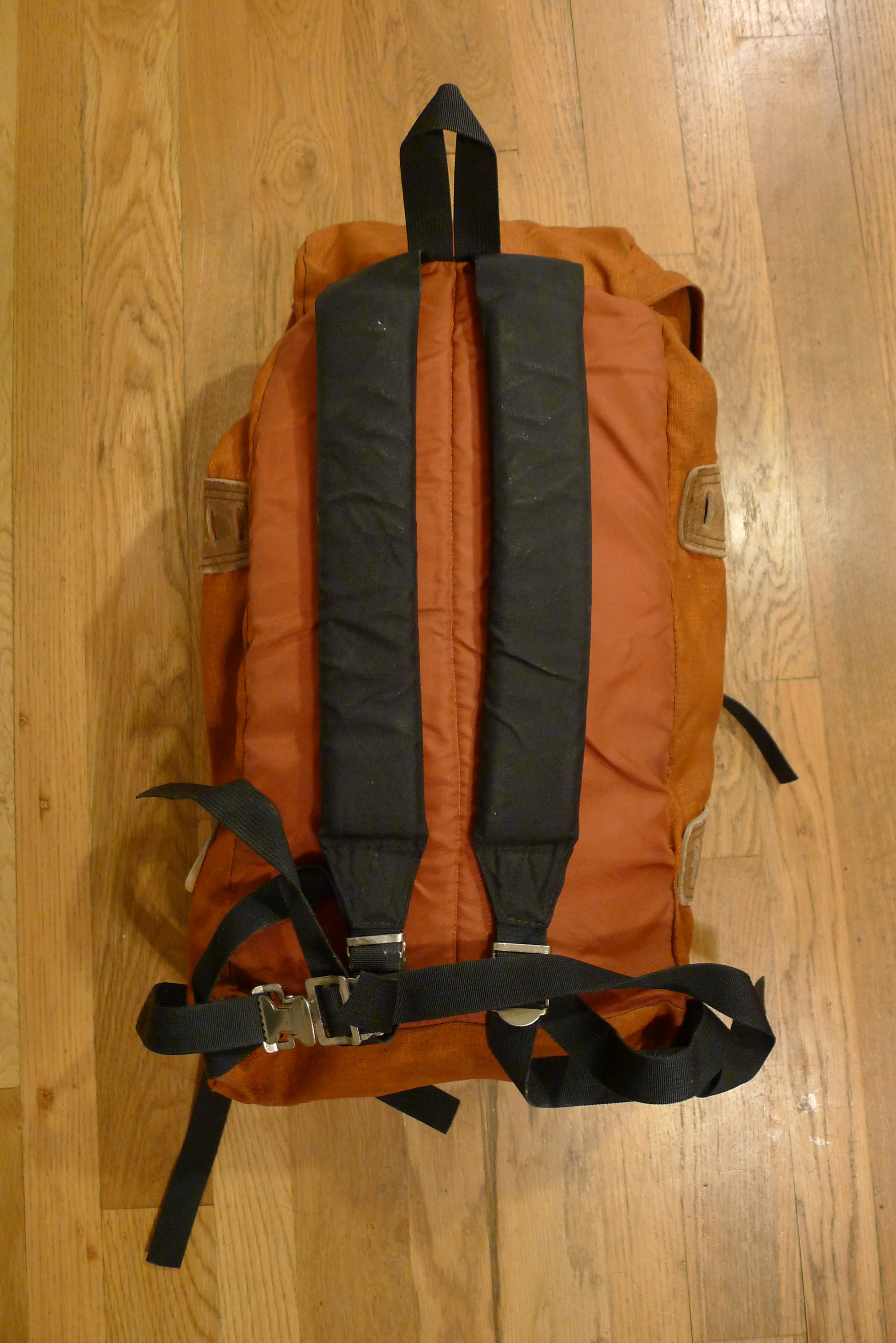 for a secure gear fit. I can imagine the popularity with those looking for lightweight loads and secure, fast paced travel up trails and extreme terrains, perhaps even climbing or skiing. The top becomes a waist pack for satellite journeys. The top detaches to become its own oversized waist pack. I’m unsure if this pack may have had a removable rigid spine, as found there was none.