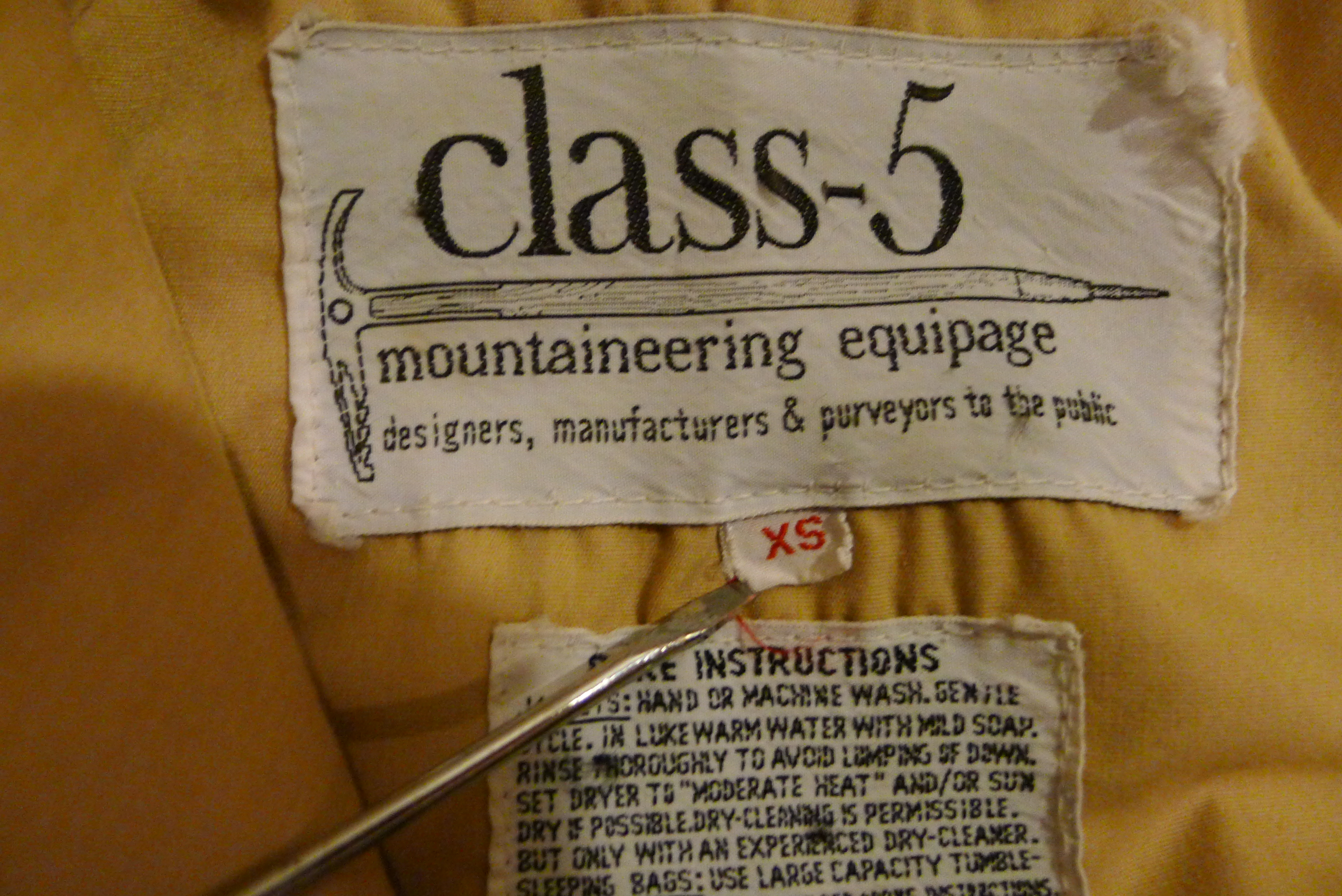 Class-5 the self-proclaimed Standard of The World was is California-based outdoor gear company founded in the early 70s by Justus Bauschinger a designer for Trailwise and The North Face. The company was known for their innovative designs and marketing.