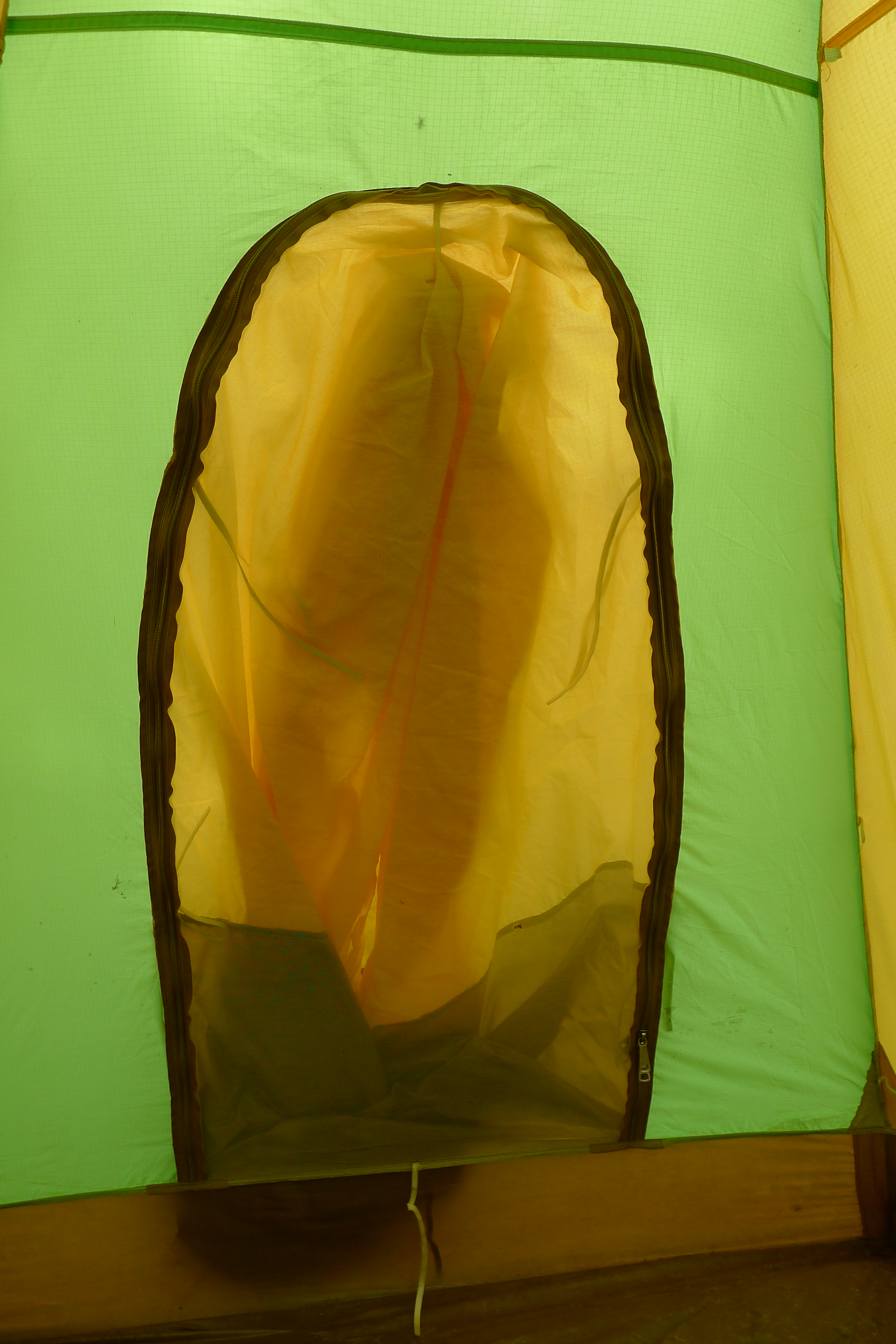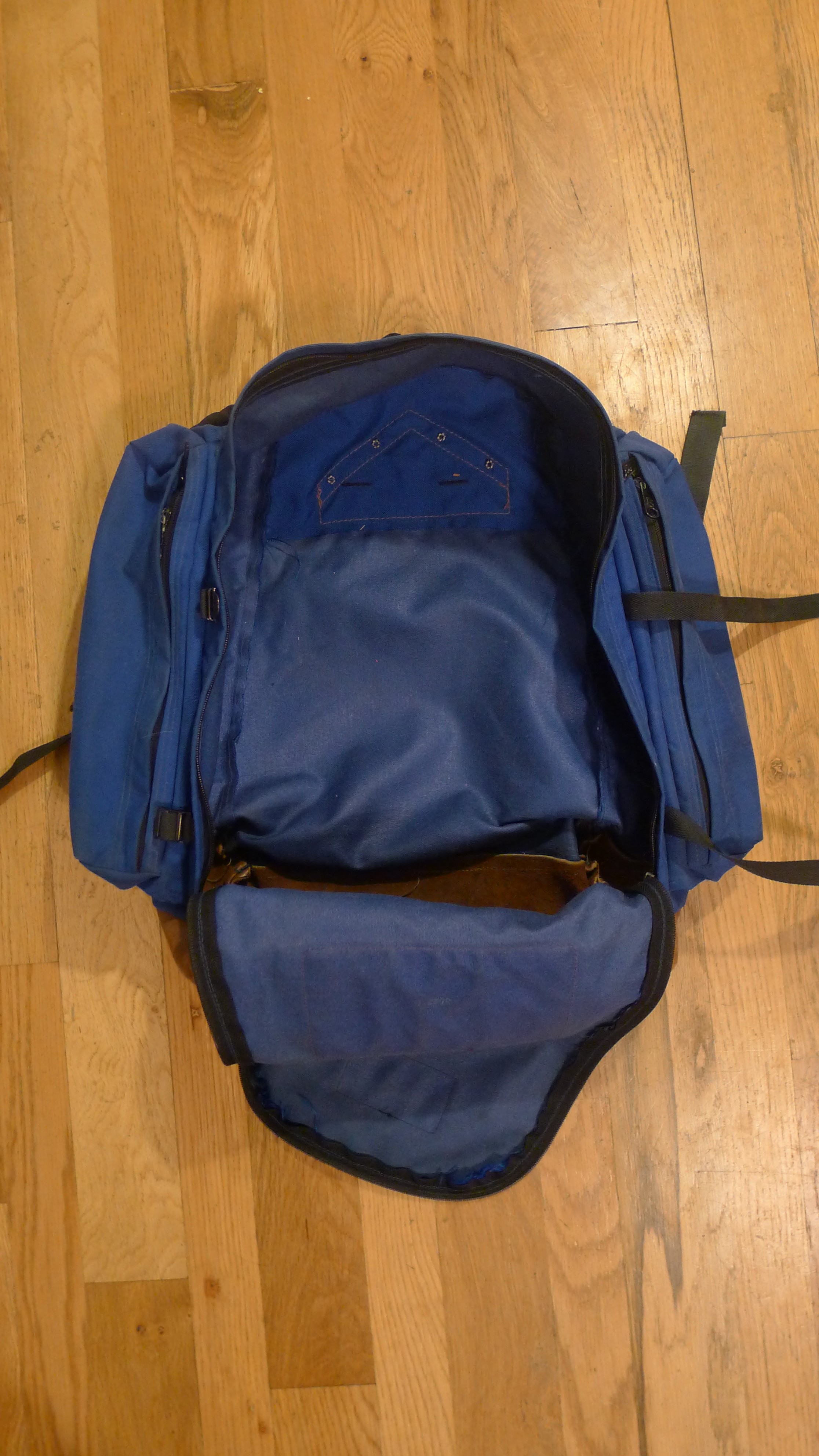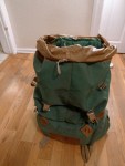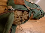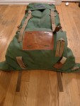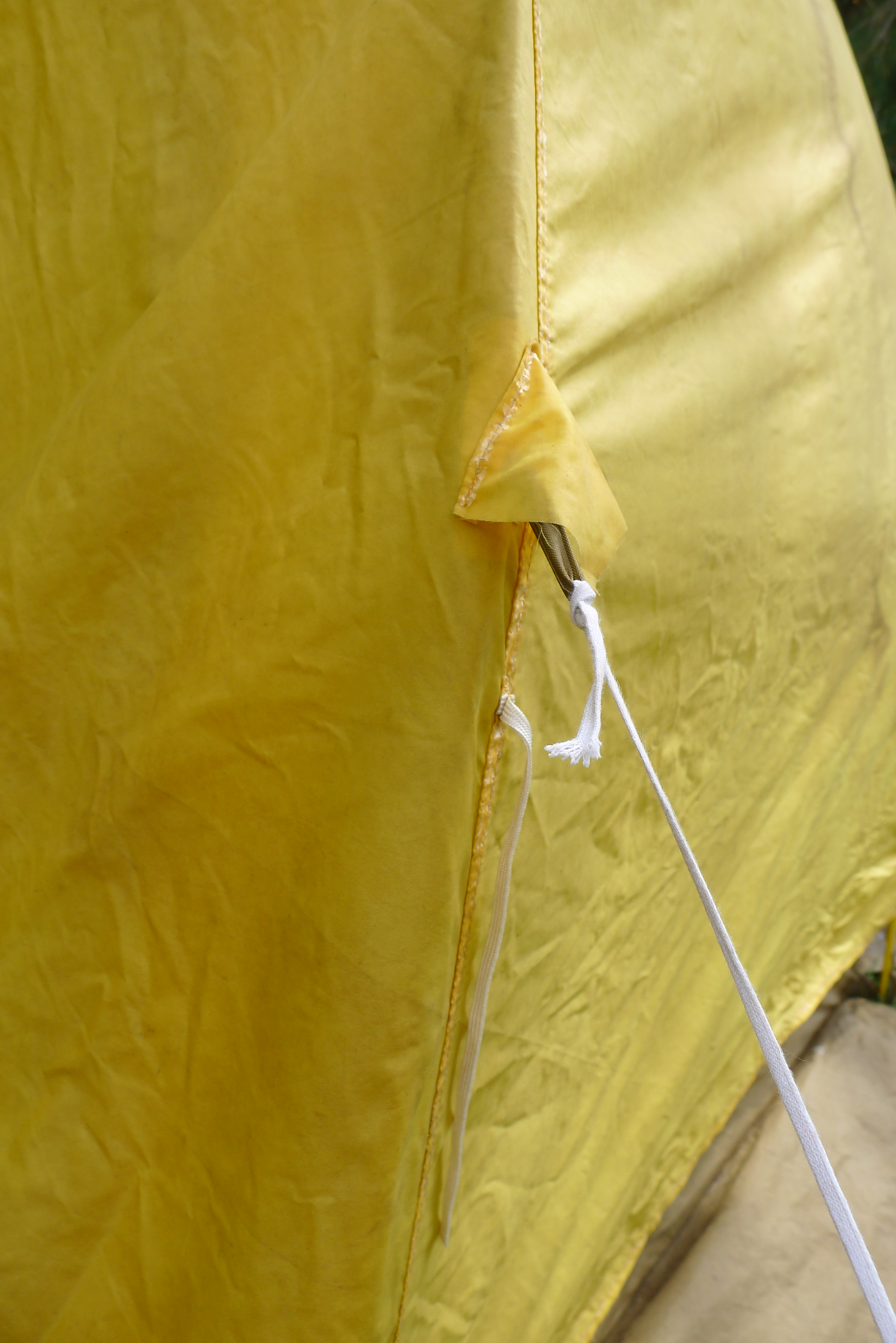This is a Jansport Mountain Dome Tent. As I’ver read it’s the model used by the American assent on K2 in 1975. This early Geodesic tent has features making it befitting of an ascent on the second highest mountain in the world. Those features include an additional tunnel style door and vents. A full covering fly with cut outs for additional guy lines from the tent poles. Snow piled on the flaps around the bottom helped keep the tent anchored in extreme conditions. The poles are original and fit together in individual sections,there’s no shock cord connecting the segments of each of the three poles. The sections are made of a dense plastic or possibly fiber and resin material. I can imagine trying to fit them together, fumbling with them in a K2 basecamp, but they work.