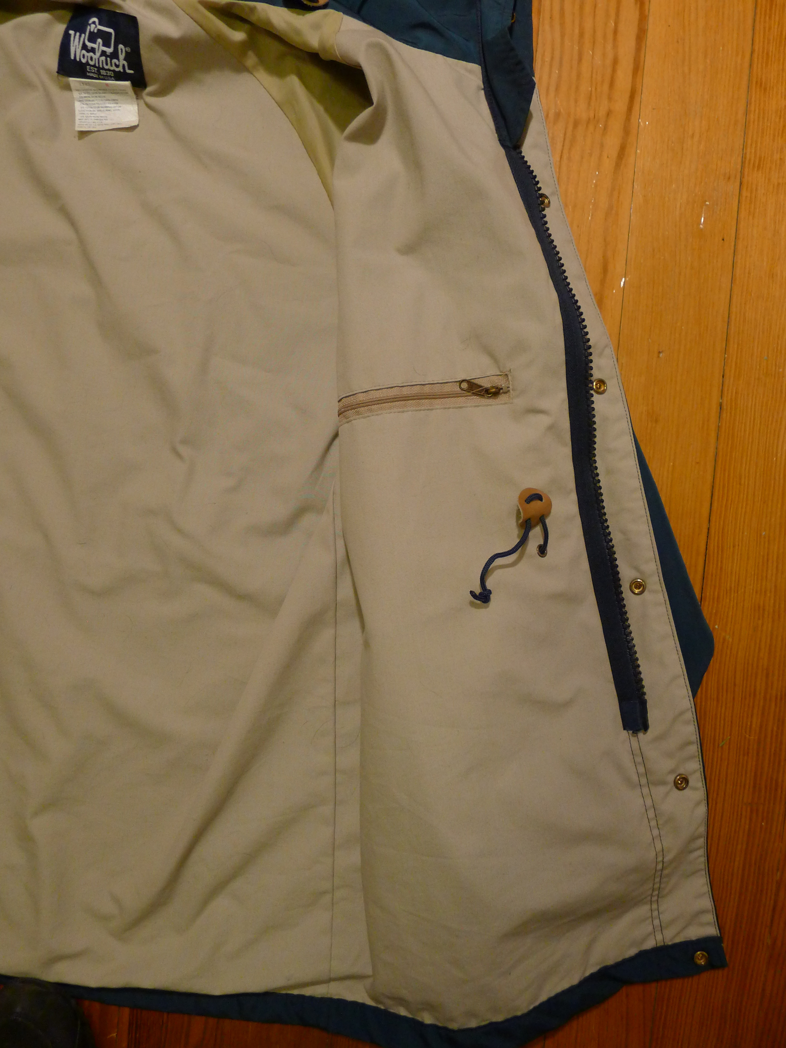 An age of innovation is evident in this beautifully functional anorak parka. First let’s talk about the fabric choice. While Gore-Tex had been around for over a decade by 1980, commercial use didn’t really begin until 1976. So at the time of this parkas’ manufacture, the breathable, waterproof fabric was still new to consumers and just beginning to overtake old standards like rip-stop nylon, 60/40 and other poly cotton blends as go-to shell materials. The early version of Gore-Tex used here is much thicker than what we know today, and actually has a weight closer to 60/40. The white label found in the hood, an early commercial example (earlier versions were white on black), has what I believe to be a month and year of manufacture on the back side. I have never fully authenticated this theory, but after years of looking at these labels and comparing to catalogs and other resources, it seems to line up. The markings seen on this label are IV/82, or April, 1982. The practice of this dating on the backside of labels also appears to continue in the early black version of the Gore-Tex Label.
