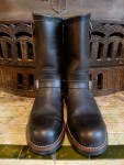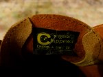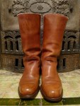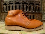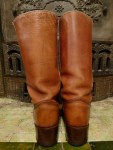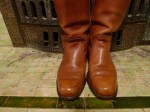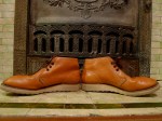 This style is similar to the popular campus boot but with a narrower toe which is slightly rounded (somewhere in between a square toe and a point). This boot also has some nice lines which differentiate it from the campus model. The vamp extends high up the ankle and does not continue to the side seem. Side seems are covered in a strip of leather and the heel panel extends from that a few inches up from the sole. They are lined with very soft white leather and have internal nylon web pulls. The sole is all leather, with 1.75″ stacked leather heel (including rubber heel sole).