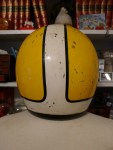 An interesting thing on this helmet is in the liner and foam core. The dense foam core is constructed of two halves instead of a single piece. Also the liner that once held the soft comfort foam is made of a nylon material, which gives the helmet interior a nice sort of satin finish, but wouldn’t be very breathable or moisture wicking. It’s evident that later safety improvements replaced some of these designs quirks.
